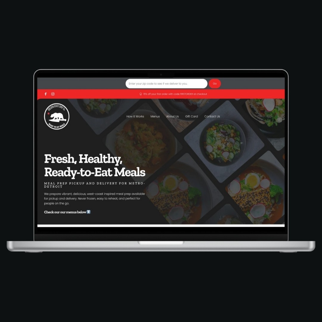 Golden State is a local meal prep service offering rotating menus with scheduled pickup, delivery, and in-store grab-and-go at their Royal Oak, Michigan storefront. Antihero led a full brand refresh and Shopify website redesign, including updated branding, brand guidelines, and foundational brand strategy. We defined the brand’s vision, mission, purpose, founding story, value proposition, and tone, then brought it all to life through a redesigned Shopify experience built to support Golden State’s weekly menu changes, ordering windows, and local delivery operations; balancing brand expression, clarity in the buying process, and conversion.